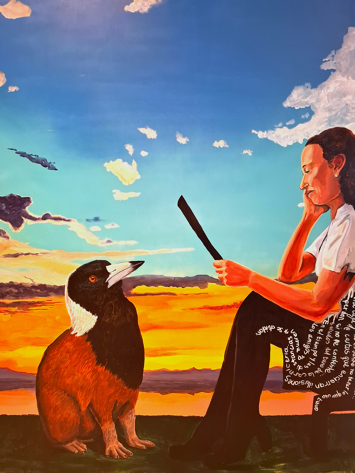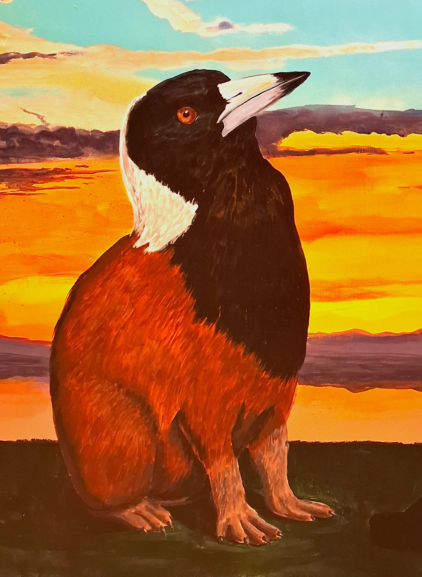 The mutated animal (Magpie mixed with Capiburra) symbolises the transformations migrants go through in their attempt to reconcile their divided realities of HOME.